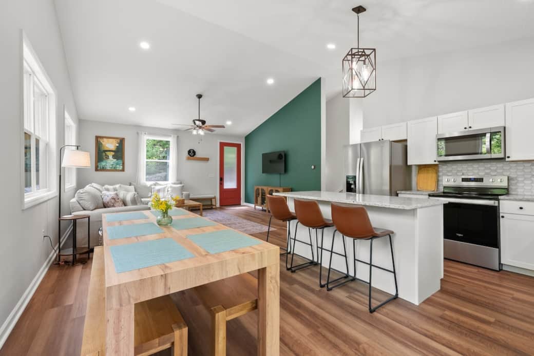 New build home bordering over 400 acres of Hocking Hills State Forest. Sleeps 10 guests comfortably in 4 bedrooms.